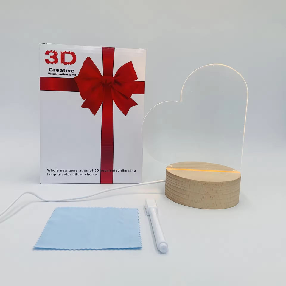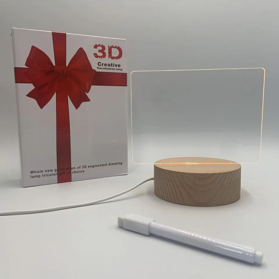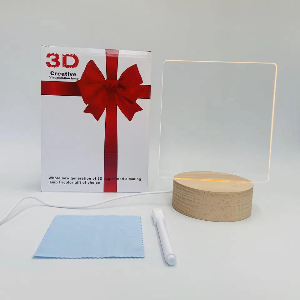 Lampe de nuit LED créative DIY, tableau de messages effaçable en acrylique transparent avec alimentation USB à effet 3D
