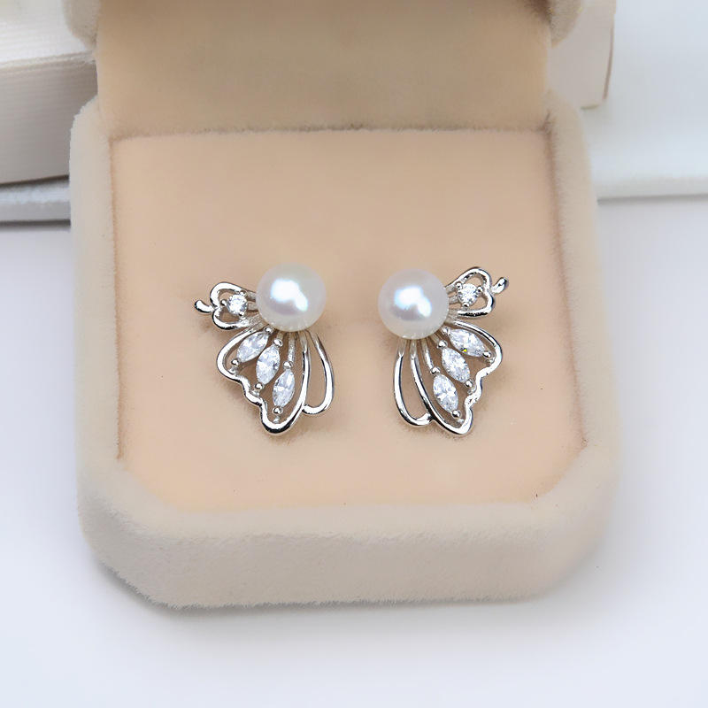 Diy Earnail S925 Silver Butterfly Earpins 5-6 Pearl Earrings Empty Support Eardrop Accessories for Fashion Stud Earrings