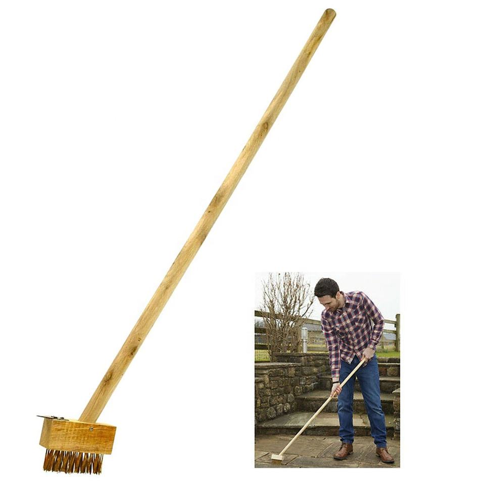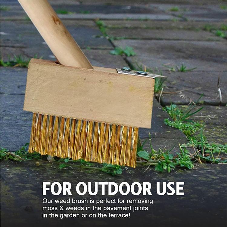 Brosse à désherber pour pavés de jardin, longue, pour terrasse, outil de désherbage, grattoir à fil avec manche en bois, personnalisable OEM