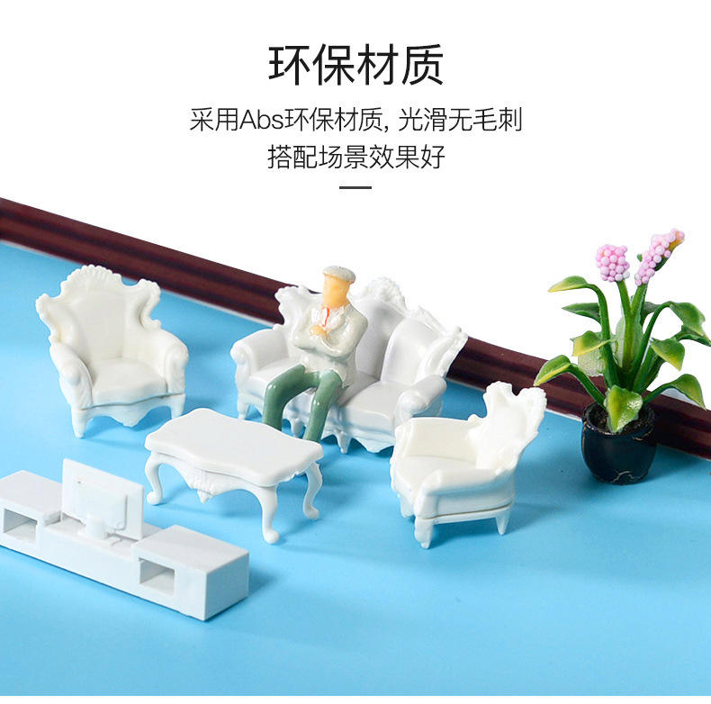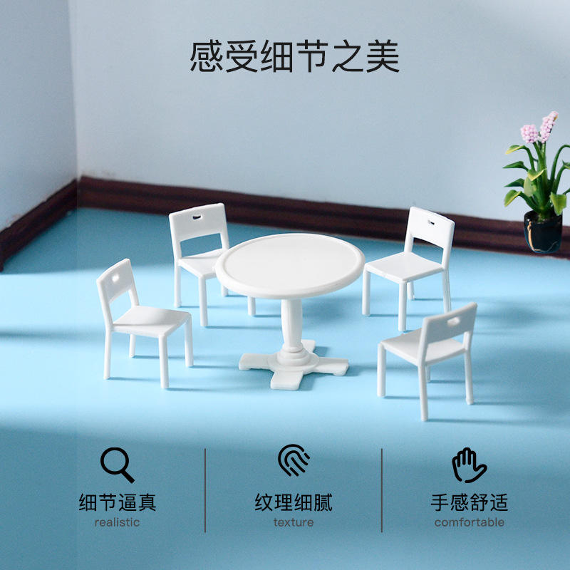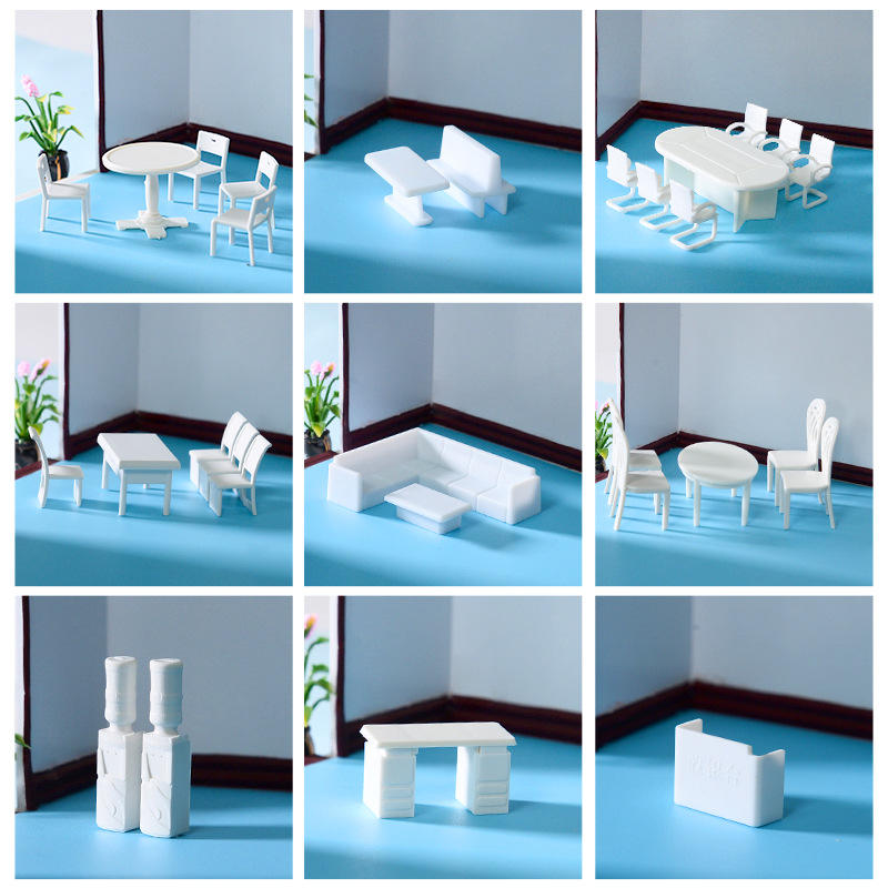 Modèle de plan de maison fait main, ensemble de meubles simulés, petits ornements d'intérieur, tables et chaises à l'échelle 1:50