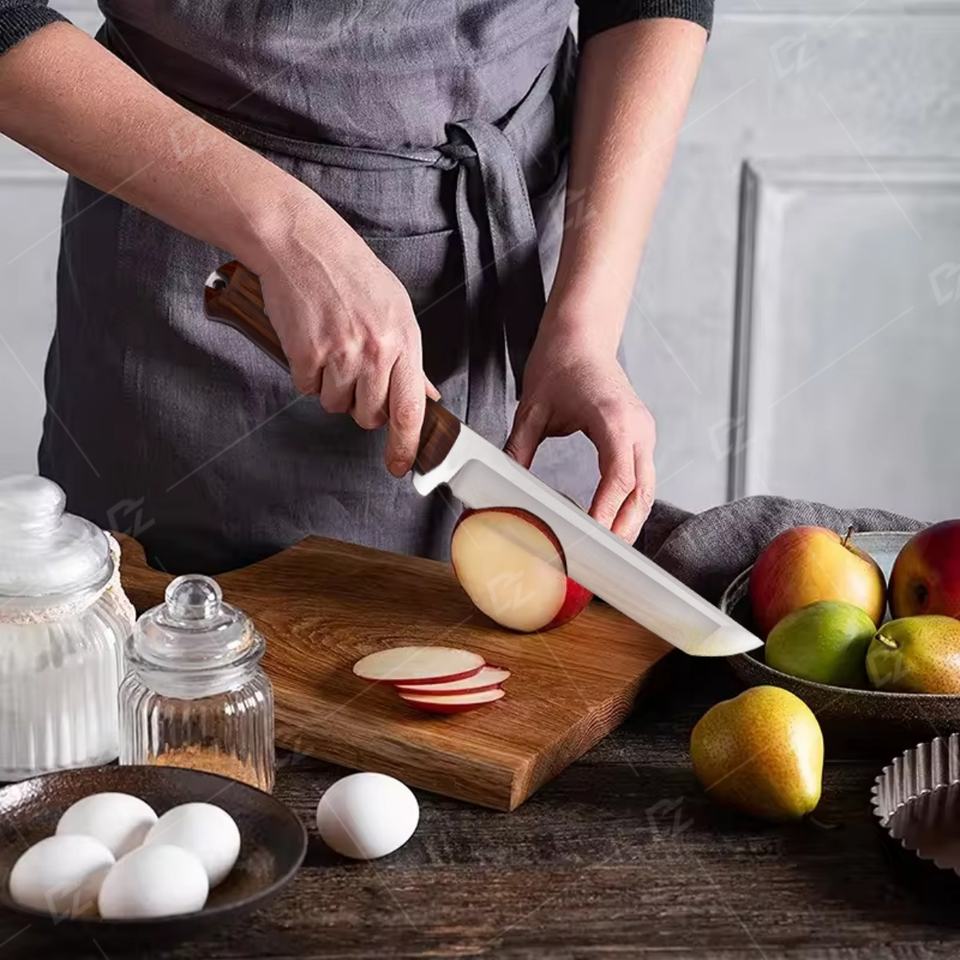 Couteau de Chef Multifonctionnel Personnalisable pour Cuisine DIY, Support OEM/ODM, Manche en Bois, Lame en Acier Inoxydable et Acier Martensitique