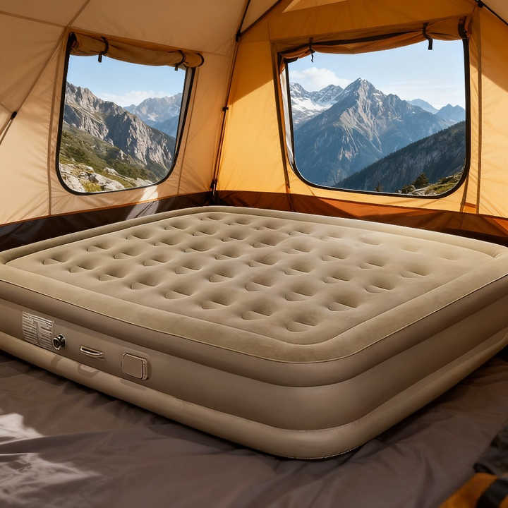 Lit d'air Dline au design moderne, en PVC floqué, avec couche en peluche, alimentation USB, longueur 190 cm, meubles de maison, utilisation en extérieur, pause déjeuner au bureau