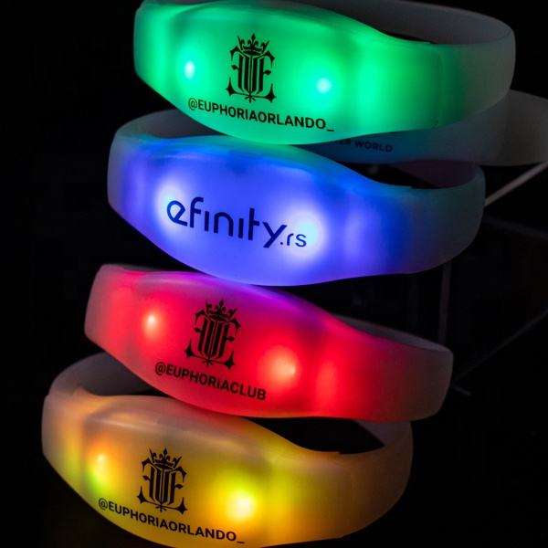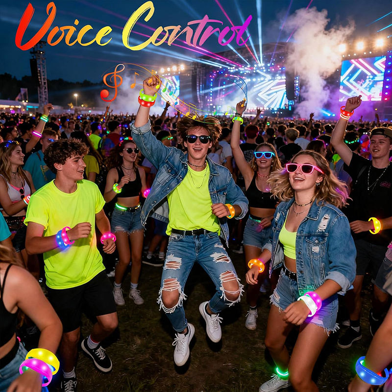 Bracelet LED personnalisé à activation sonore pour événements, contrôlé à distance
