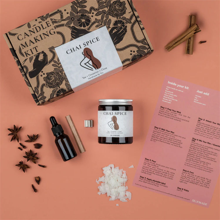 Bricolage DIY Chai Spice Kit de fabrication de bougies en cire de soja parfumée à la main avec motif de bâton pour la maison Coffret cadeau de Noël pour hommes et femmes