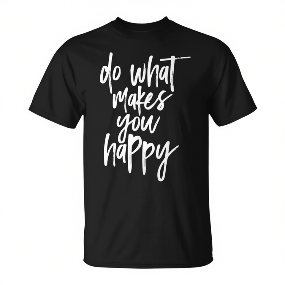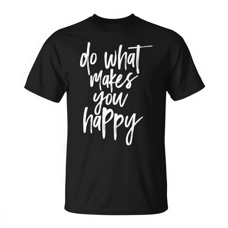 T-shirt noir avec citation « Fais ce qui te rend heureux », unisexe, col rond, manches courtes, pour adulte, promotionnel