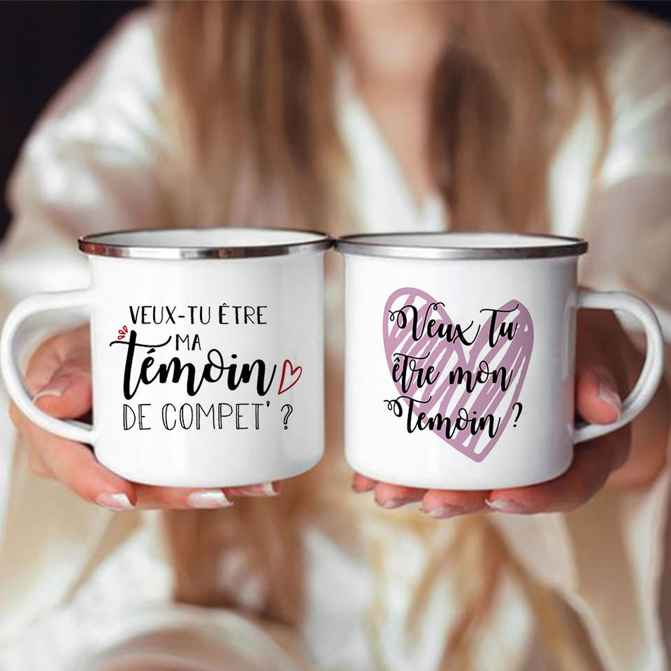 Voulez-vous être mon témoin imprimé tasses en émail Bachelorette Party tasse à café demoiselle d'honneur meilleur homme tasse cadeaux de mariage pour témoin