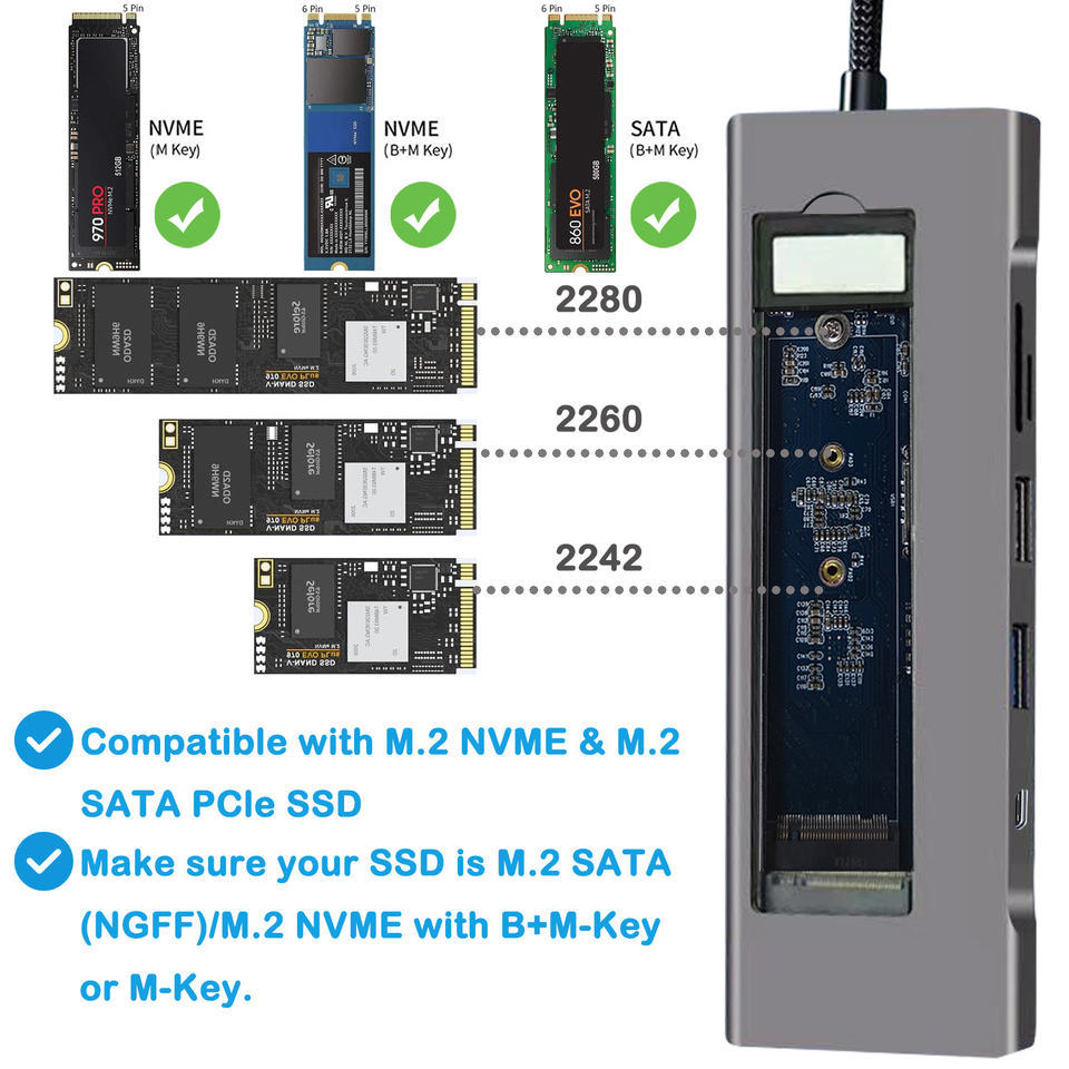 Interface:USB2.0+USB3.2+HD-MI+DATA+PD+SD+TF+Hard Drive Enclosure M.2 NVME