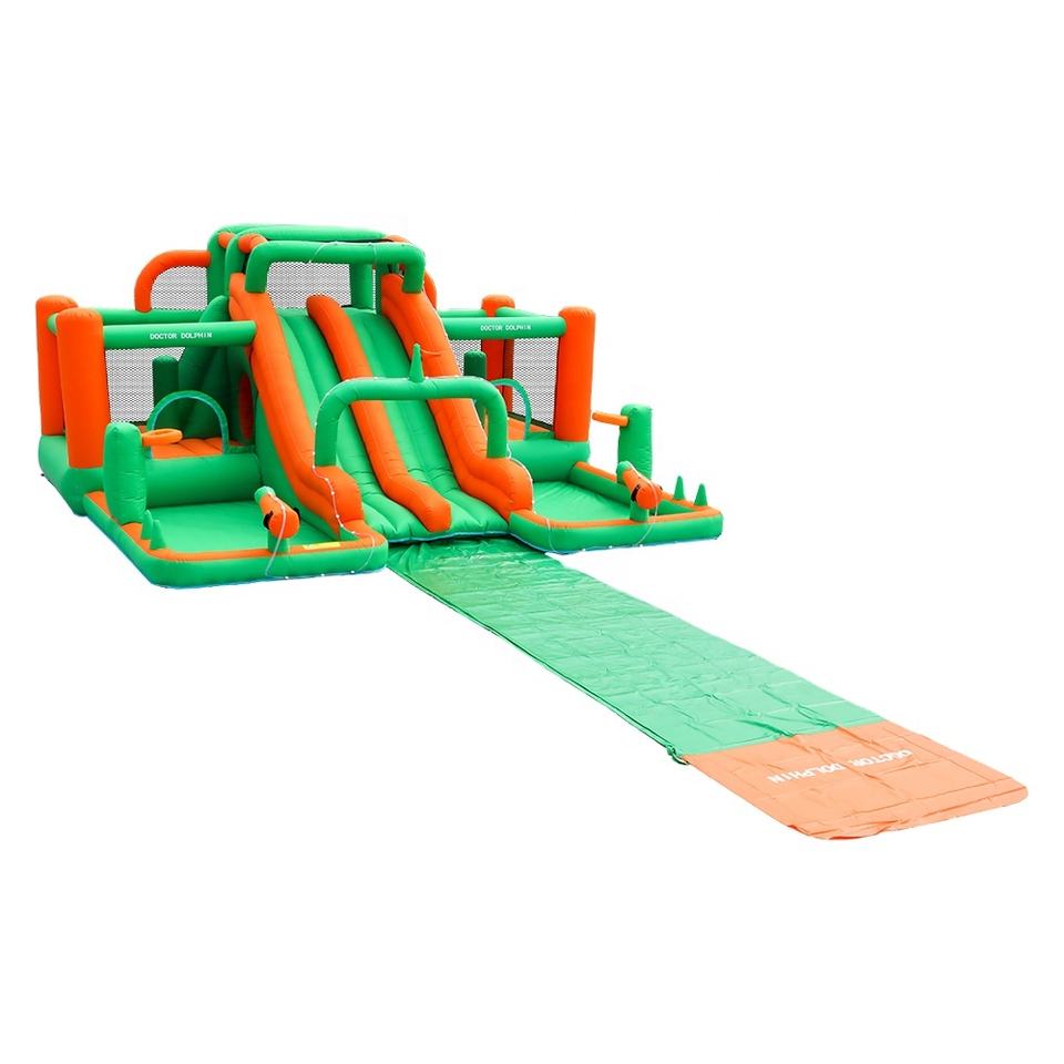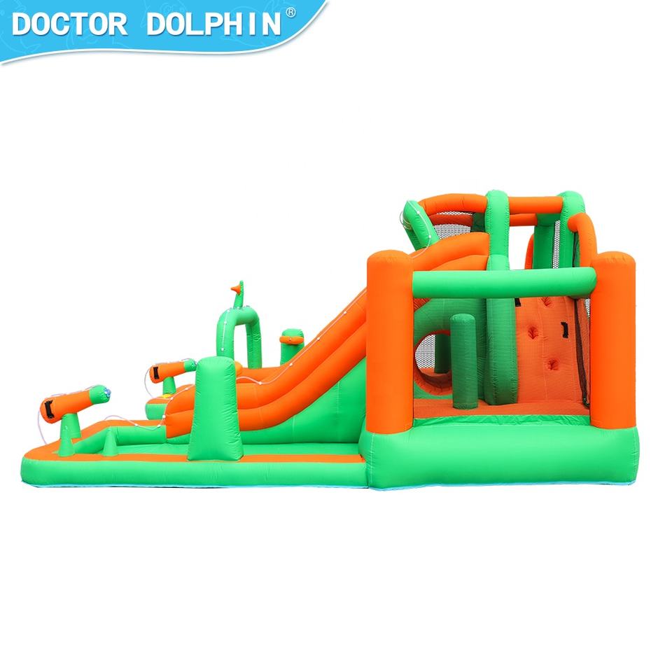 Toboggan aquatique double gonflable Doctor Dolphin pour enfants avec zone de brouillard pour jardin ou événements publics