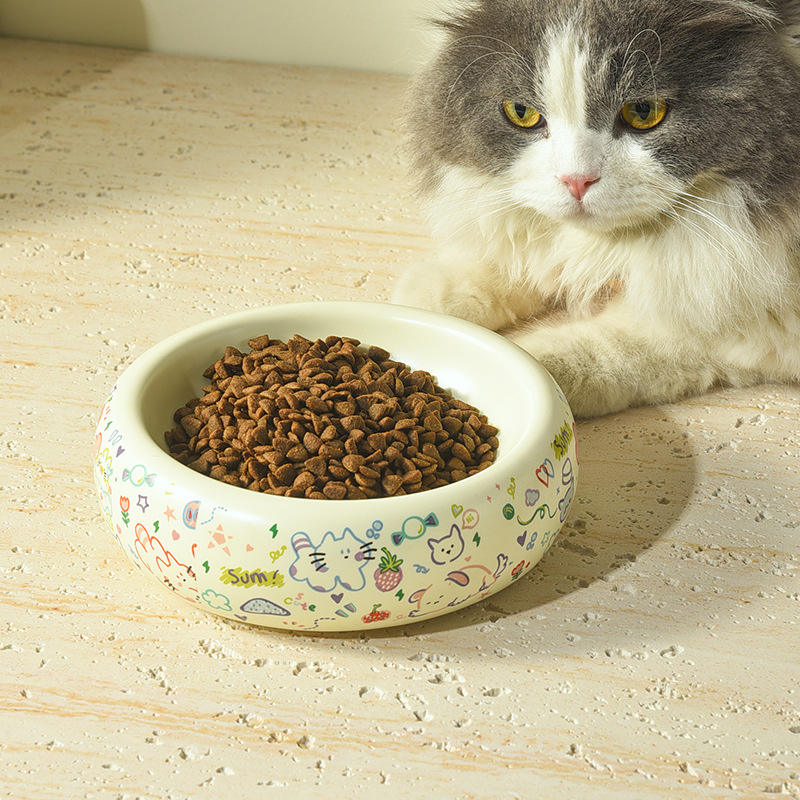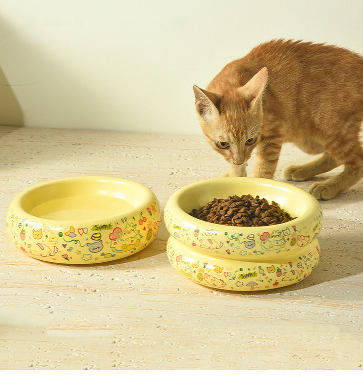 Doe Pet Bol en céramique surélevé de forme arrondie pour animaux de compagnie, avec large ouverture