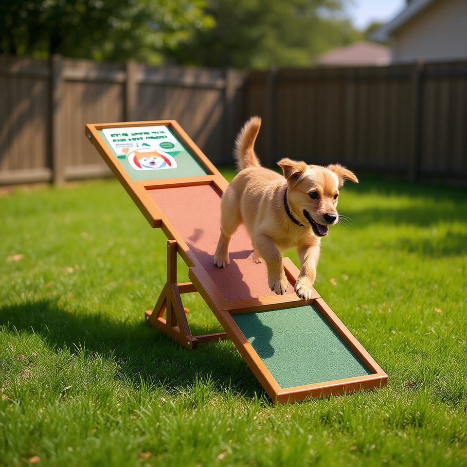 Rampe d'agilité pour chien, équipement d'entraînement en bois, pentes rembourrées vertes et brunes pour l'exercice des animaux de compagnie