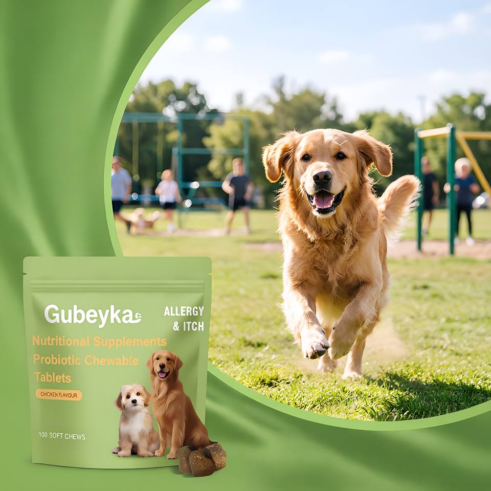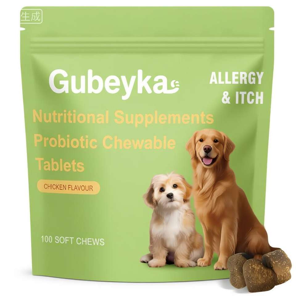 Friandises à Mâcher Tendres pour Chiens : Soulagement des Allergies, Probiotiques, Soutien Immunitaire, Santé Intestinale, Sans Arômes Artificiels pour Peaux et Oreilles Irritées, 90 unités, Soins de Santé