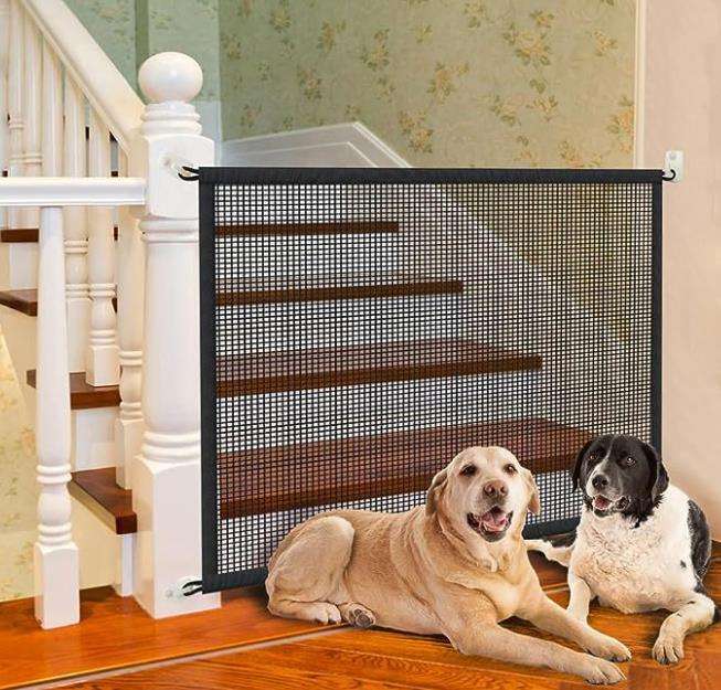 Barrière de sécurité pour chien, clôture pliable en maille respirante pour escaliers, enclos de jeu avec cadre en aluminium pour la sécurité des chiens