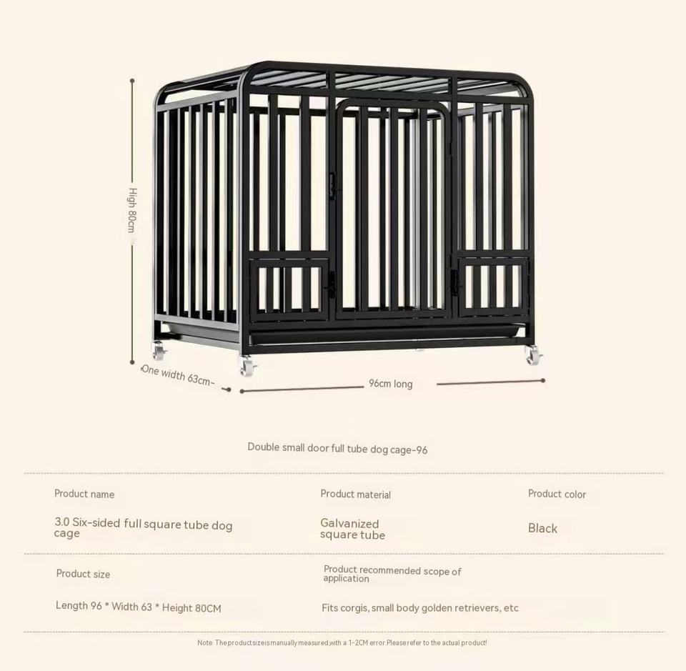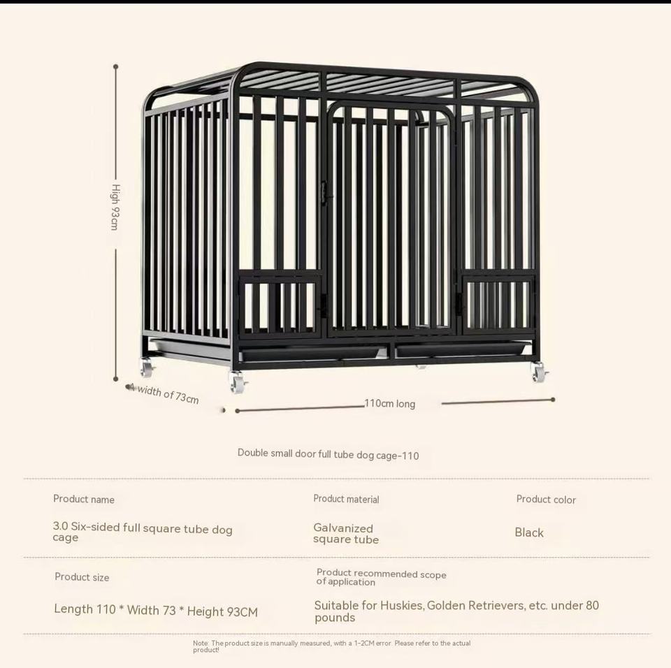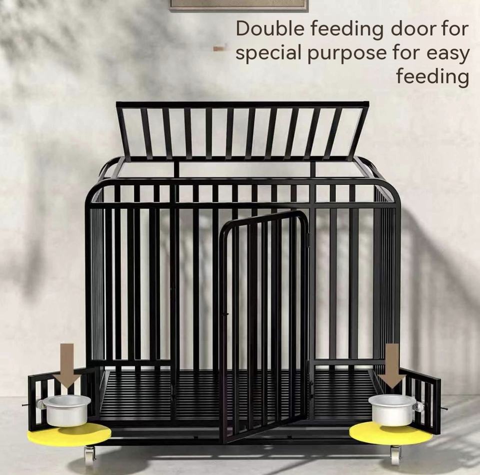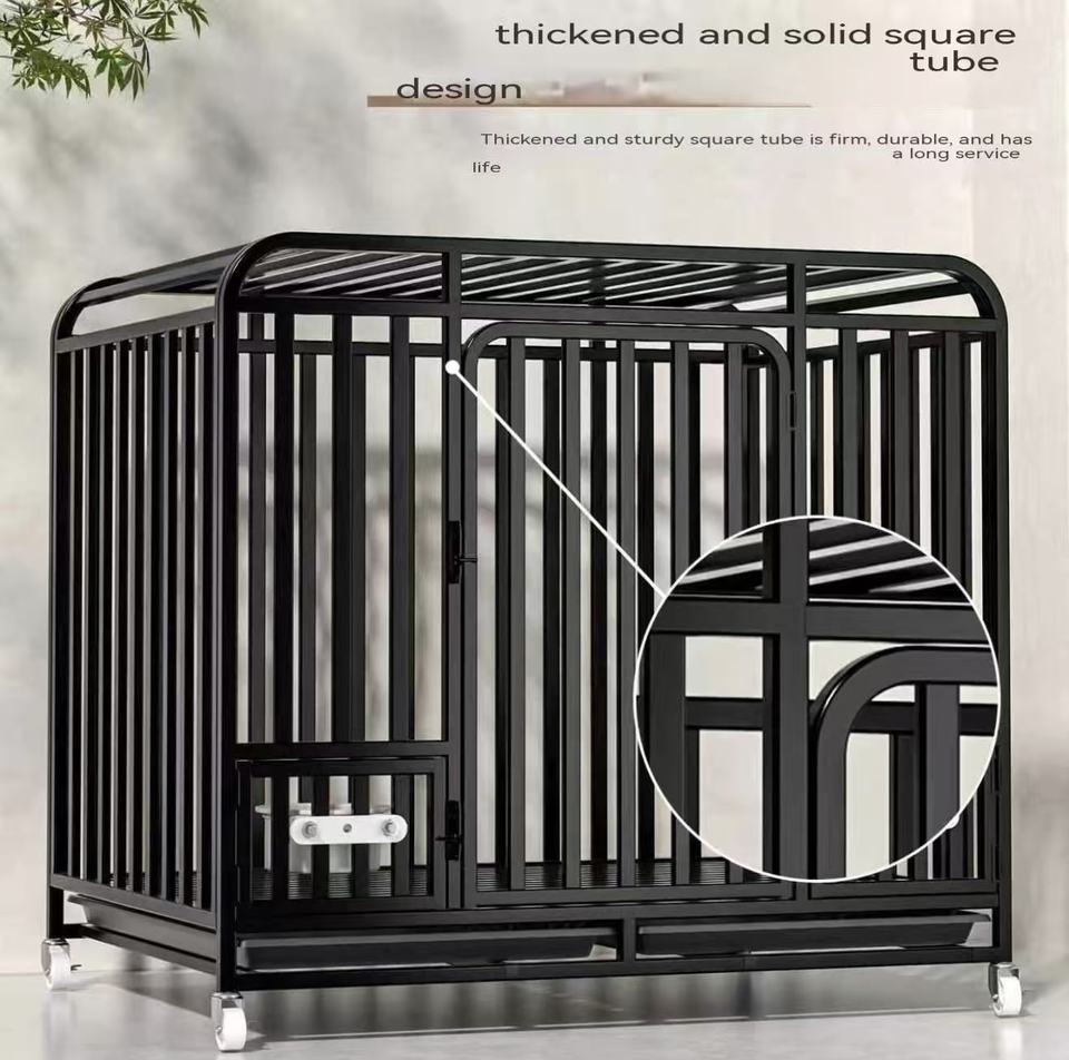 Cage pour chiens de taille moyenne, tube extra épais de 3,0 pouces, séparation intérieure pour les toilettes, design rond en plastique, emballage en boîte