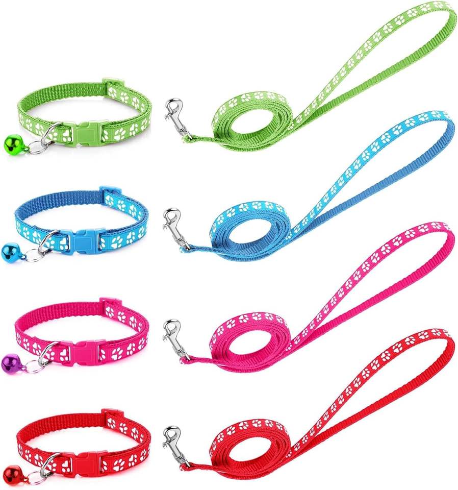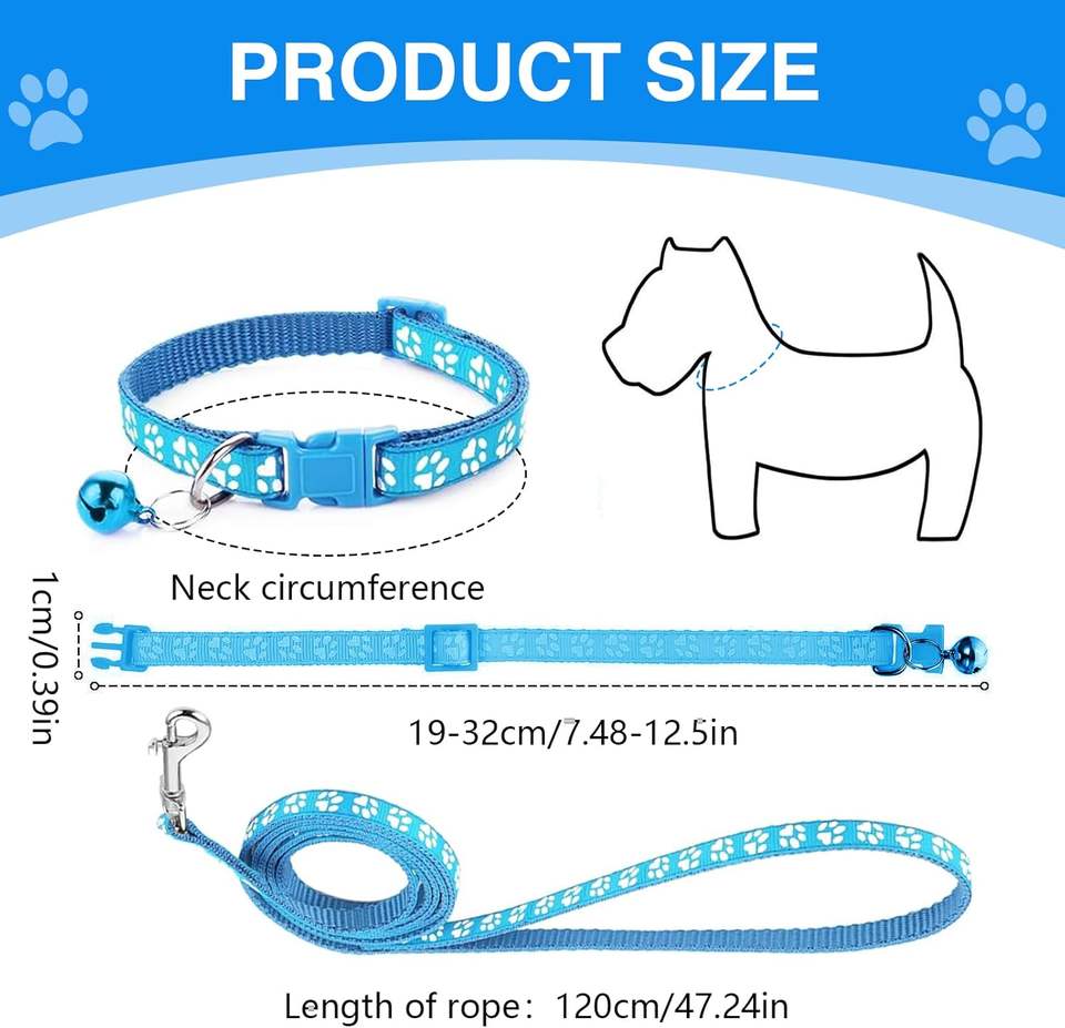 Ensemble collier et laisse pour petits chiens, 4 pièces, motif d'empreintes de pattes, réglable de 7.5 à 12.6 pouces