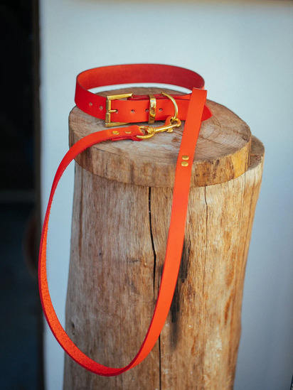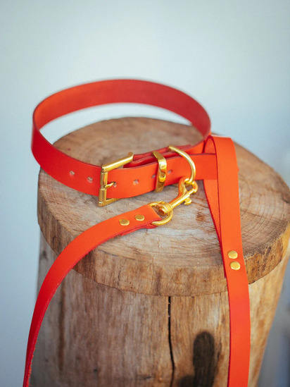Ensemble collier et laisse pour chien-30mm de large-rouge