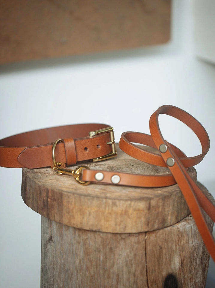 Ensemble collier et laisse pour chien-30mm de large-beige