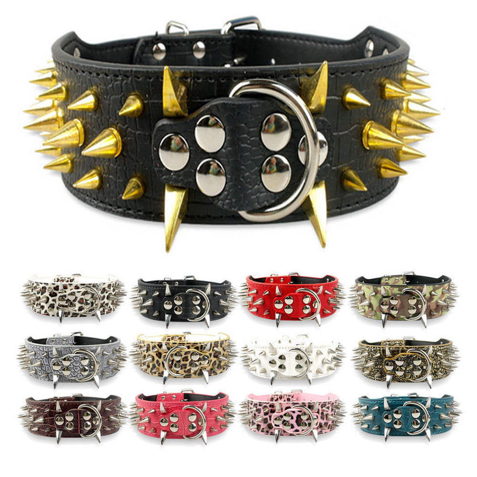 Collier de chien pour grands chiens, pointes Cool cloutées, collier en cuir pour animaux de compagnie, pour berger allemand Mastiff Rottweiler Bulldog