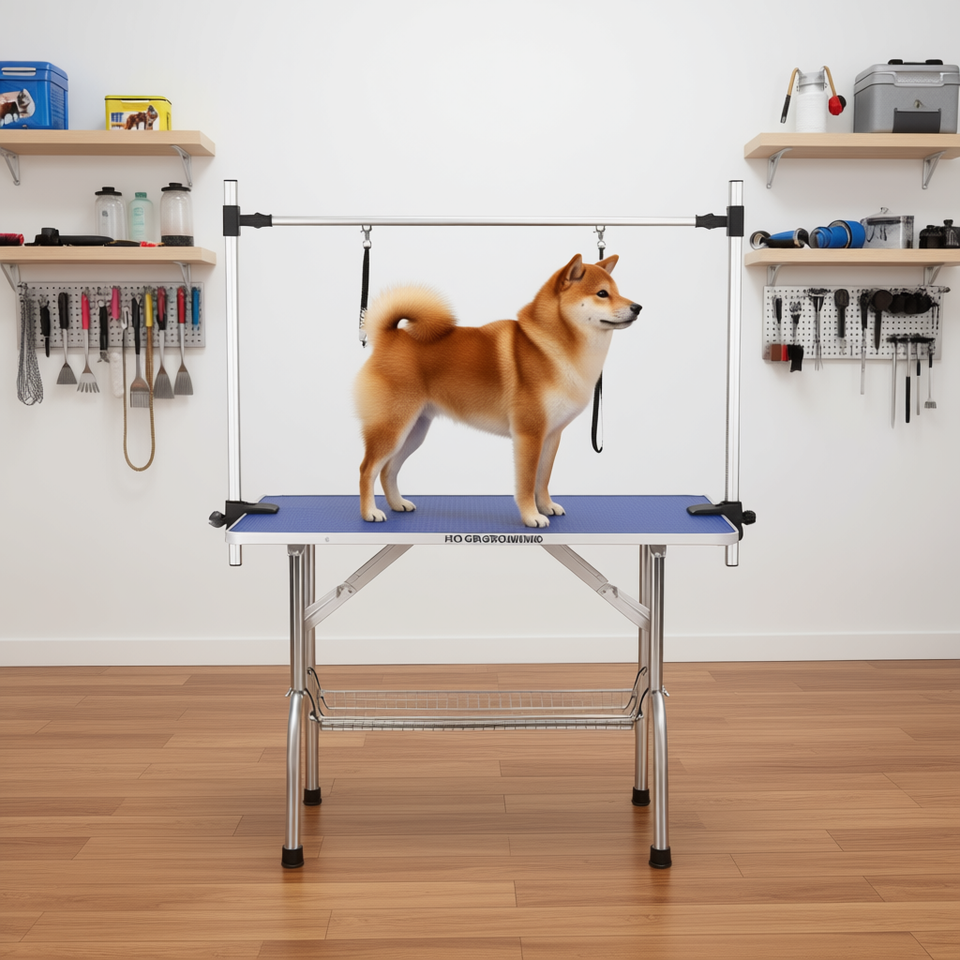 Table de toilettage pour chien 36 pouces en acier inoxydable pliable avec tapis antidérapant pour le soin et le bain des animaux