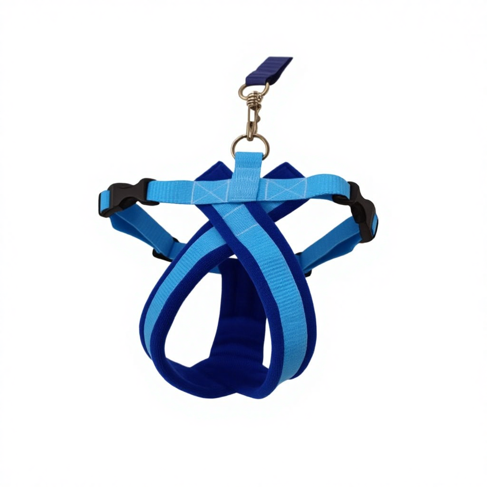 Harnais pour chien doublé en polaire bleu ciel royal avec options de laisse assortie pour la promenade des chiens