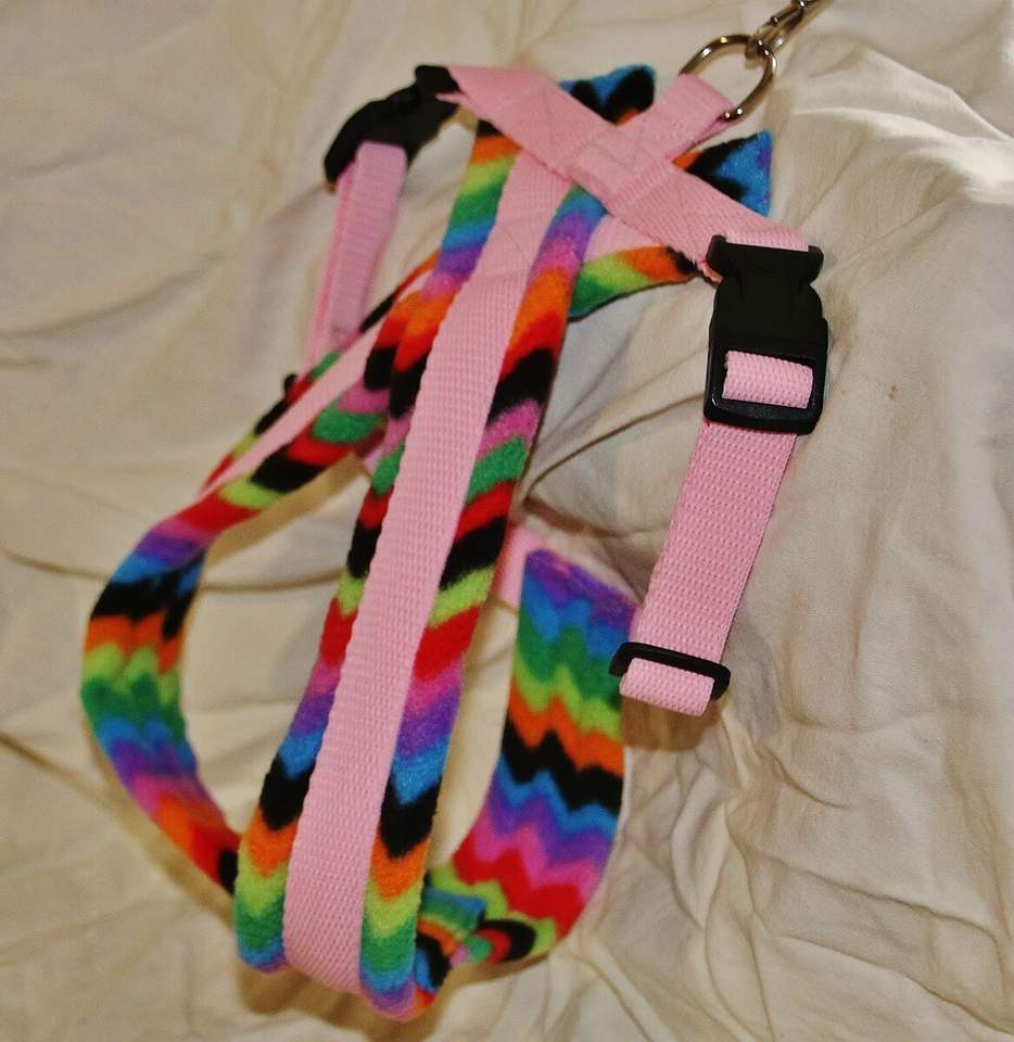 Dog Harness Fleece Lined Zig Zag Design Multi-Colored Baby Pink