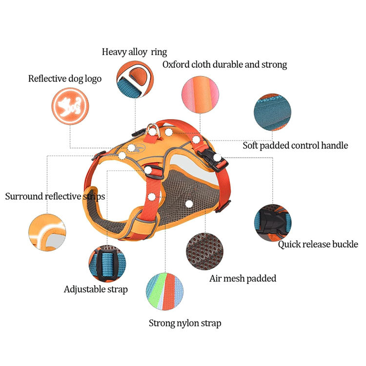 Nom du produit:Harnais pour chien Outdoor Adventure Gilet réfléchissant Attachement de laisse