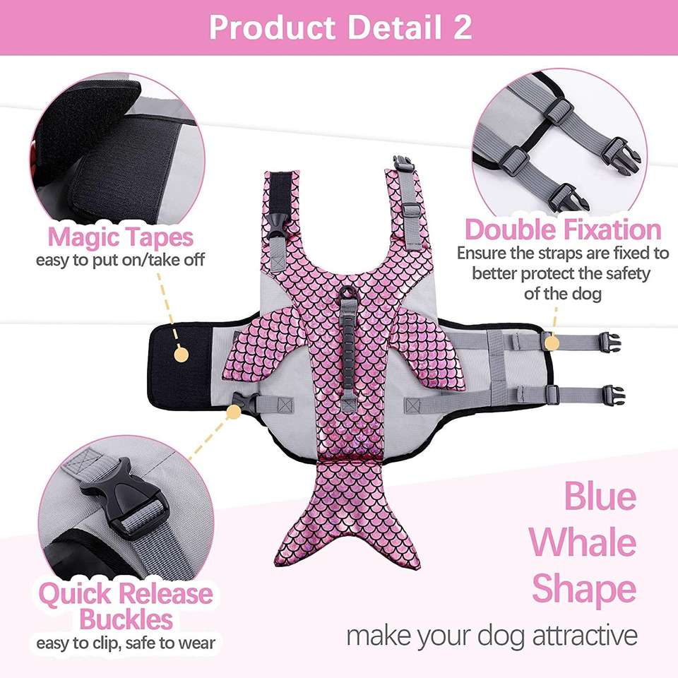 Gilet de sauvetage pour chien, haut flottant bleu en forme de baleine, gilet pour animaux de compagnie, maillot de bain avec écailles de poisson réfléchissantes, agent de sécurité