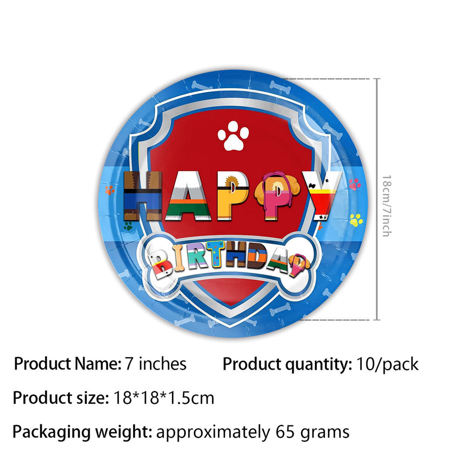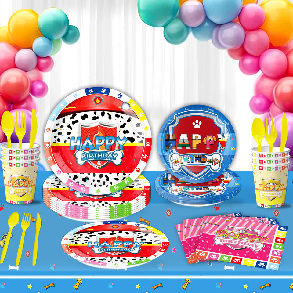 Vaisselle jetable écologique à motif de patte de chien, assiettes et gobelets en papier, décorations pour anniversaire, remise de diplôme, enfants