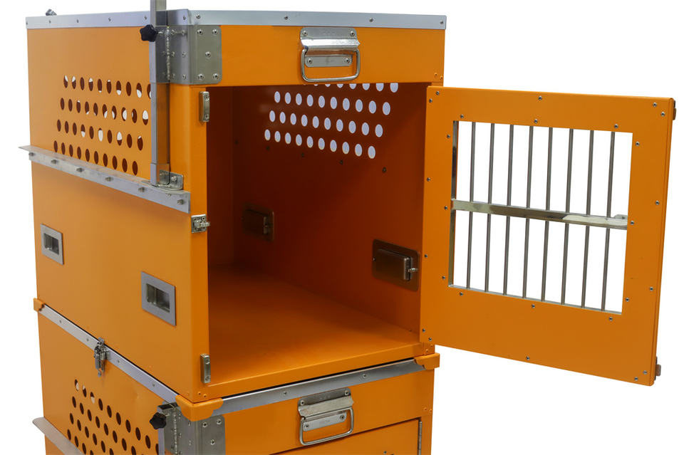 Cage de transport pour chien en aluminium, type avion, pour salon canin