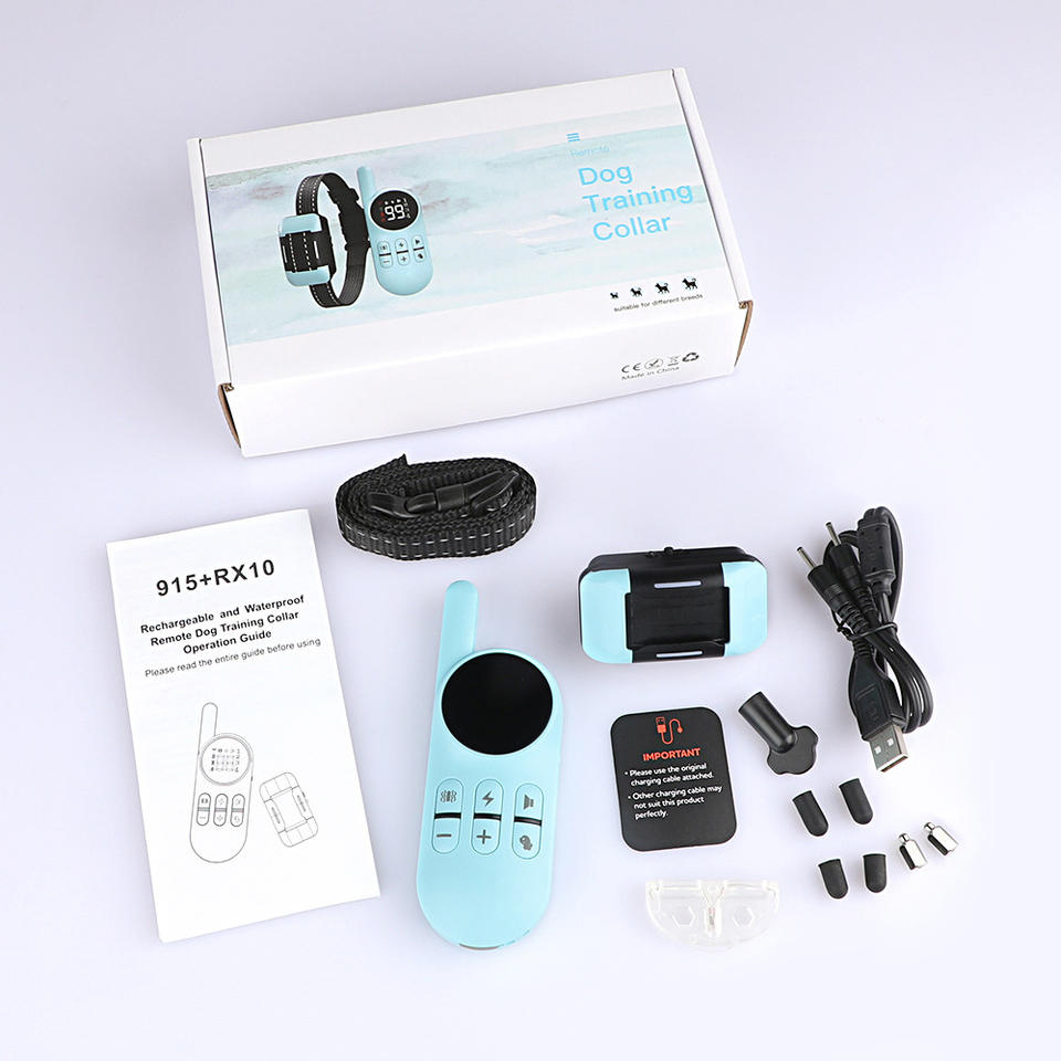 Collier télécommandé pour dresseur de chiens, portée de 300 m, son et vibrations pour chiens, bleu clair