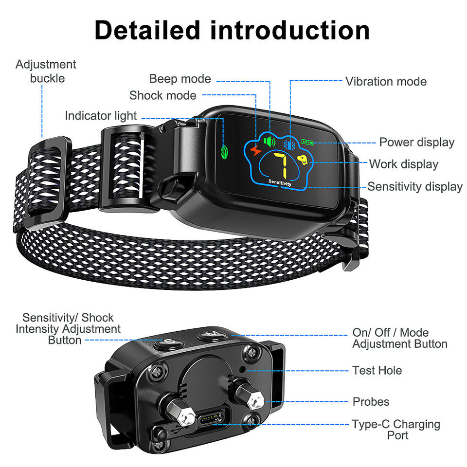 Collier de dressage pour chien avec écran couleur, 5 modes, étanche, choc électrique pour animaux de compagnie