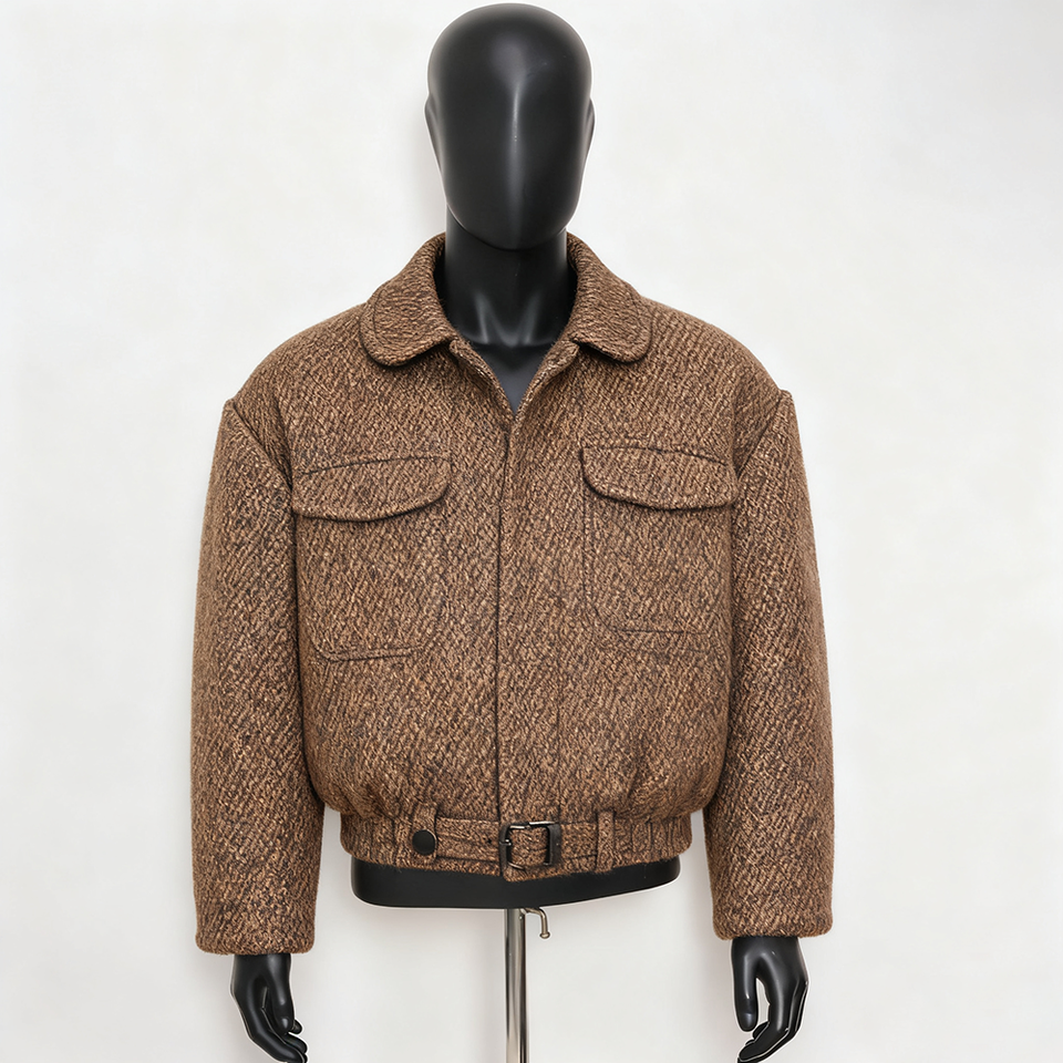 Doger personnalisé grande taille veste en tweed ample chemisier court veste en tweed manteau marron luxe bombardier manteau veste