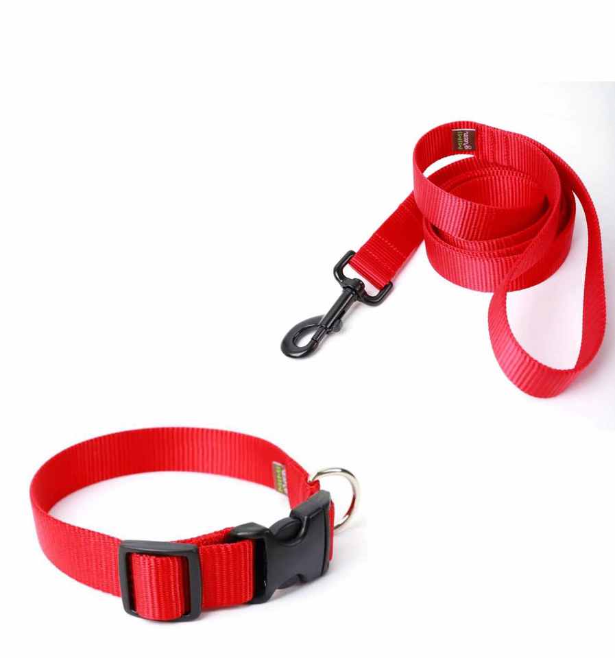 Dog Collar and Belt Nylon Adjustable Strap Walking Leash Set (Red)