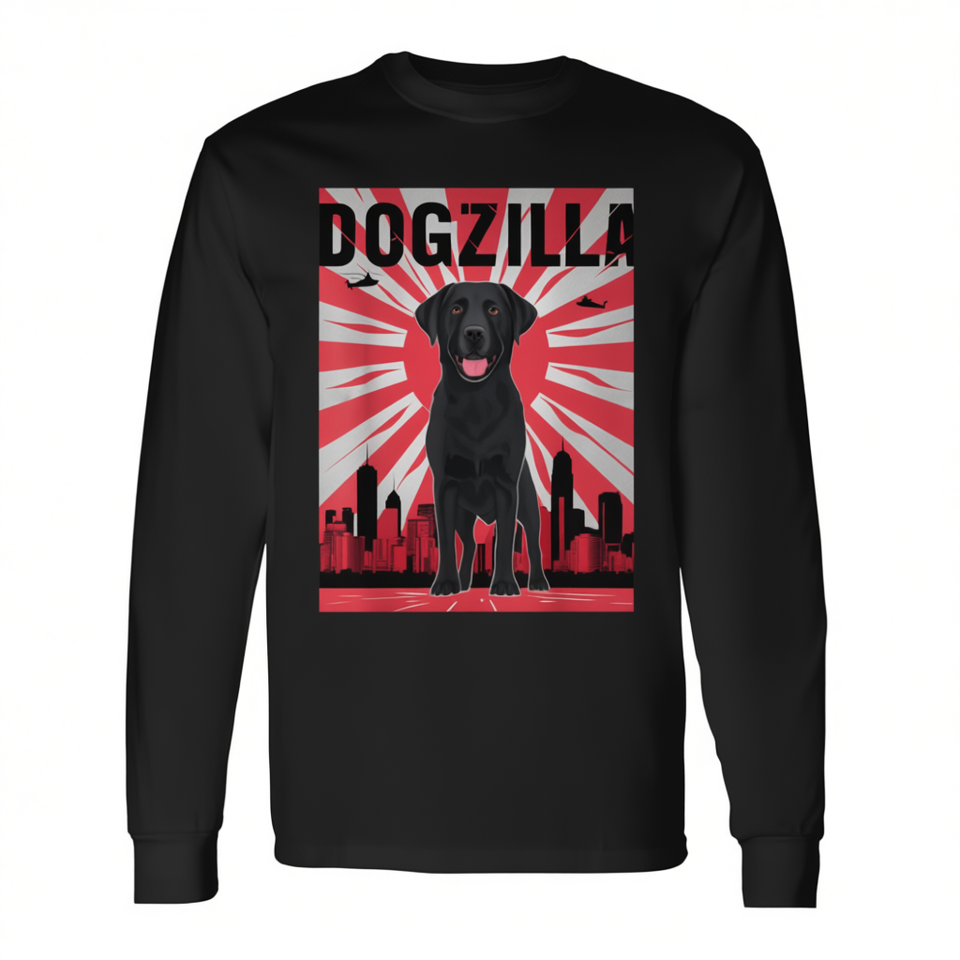 Dogzilla T-shirt à manches longues noir Labrador Retriever, design japonais rétro