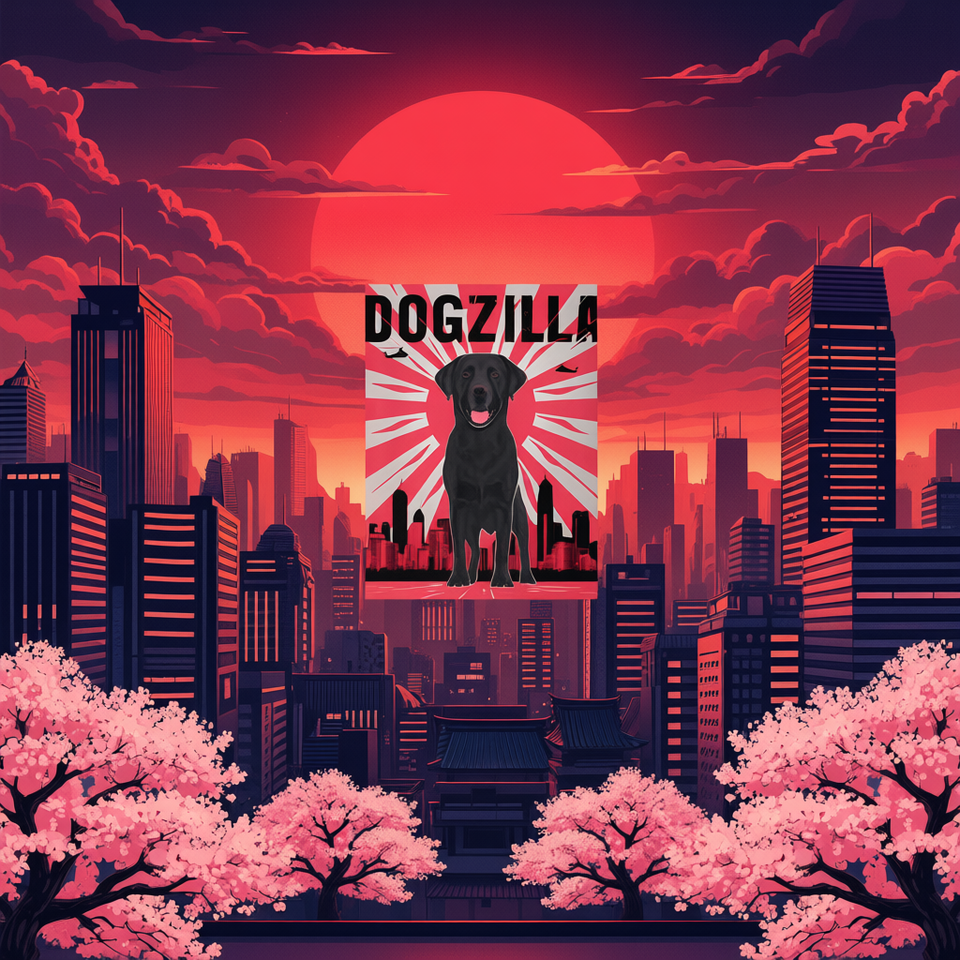 T-shirt Dogzilla Black Labrador Retriever au design japonais rétro