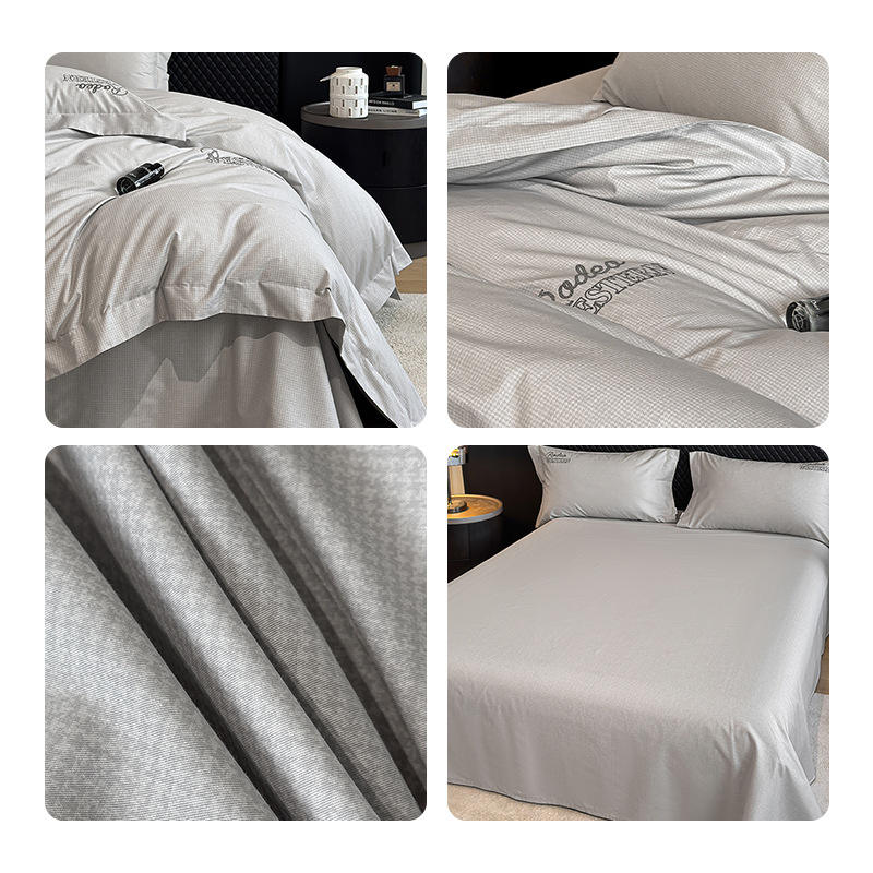 Parure de lit Dohia en pur coton, couleur unie, rayures, housse de couette, drap, respirant, doux pour la peau, toutes saisons, lavable en machine