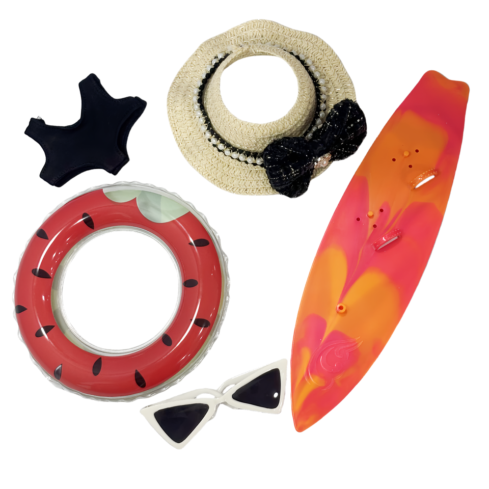 Robe d'été de style jouet de dessin animé de poupée et tenue de lunettes de soleil avec anneau de natation ensemble d'accessoires de bikini de mode