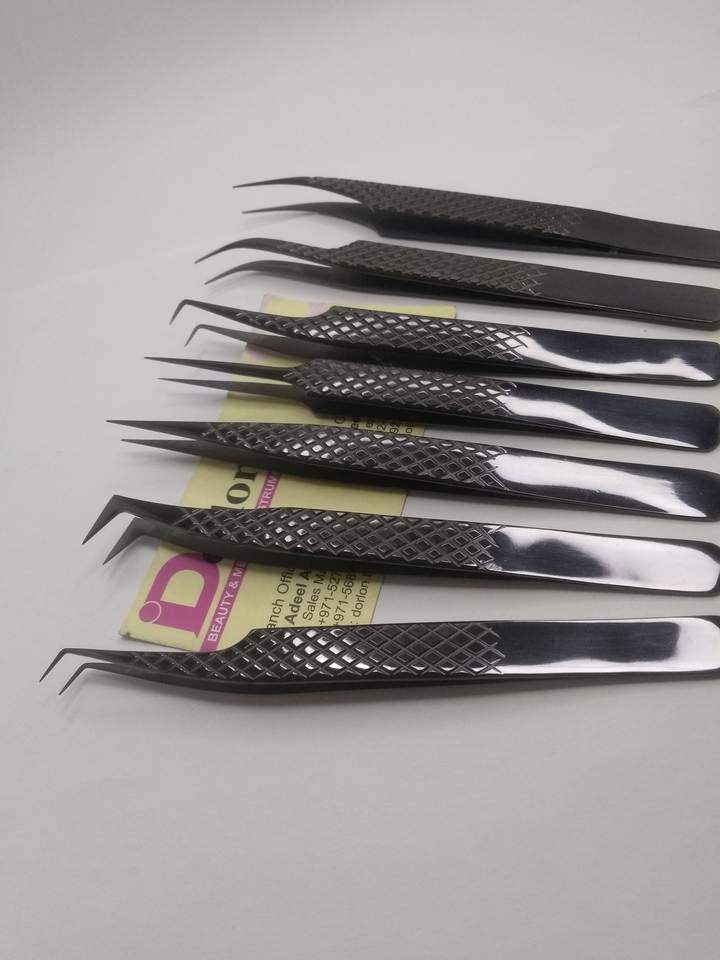 Pince à cils à poignée de conception de poupée pince à épiler noire brillante Plasma Diamond Grip Volume Pointed Curved False Eyelash Extension Tweezers