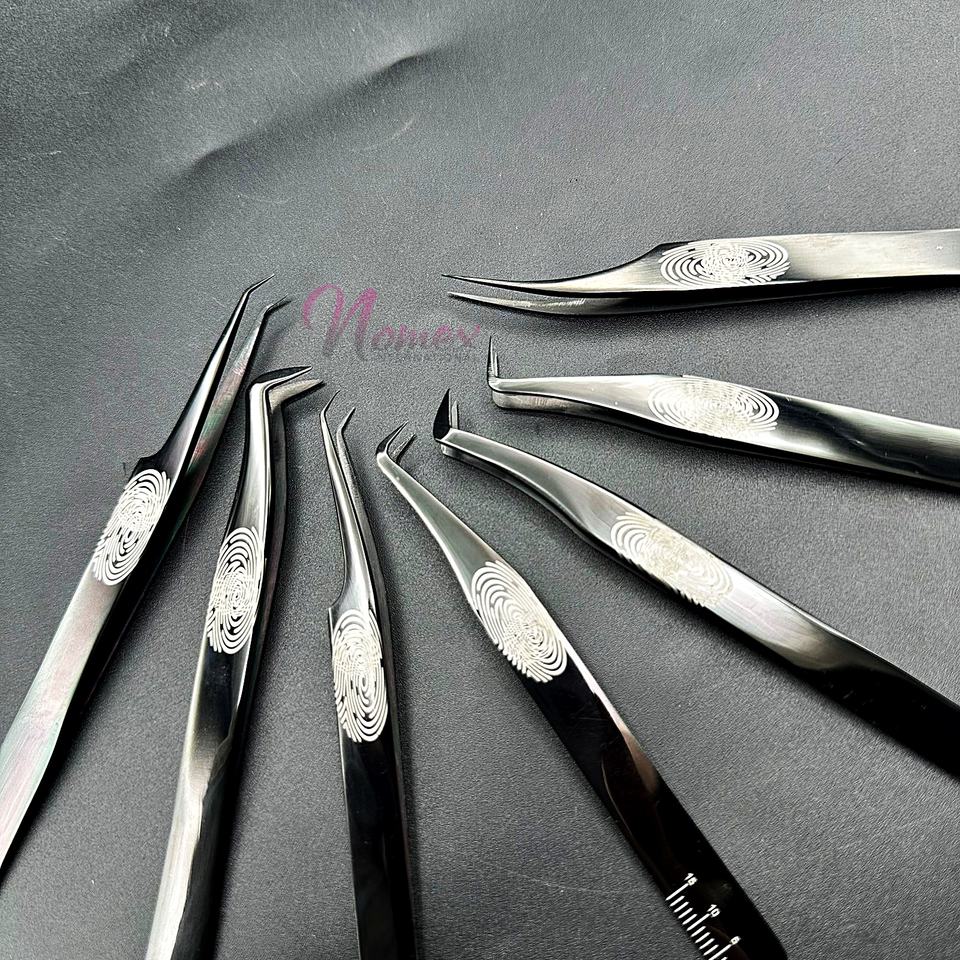 Pince à épiler de style dauphin pour extension de cils Pince à épiler à 45 degrés avec impressions d'empreintes digitales Pince à cils Logo personnalisé