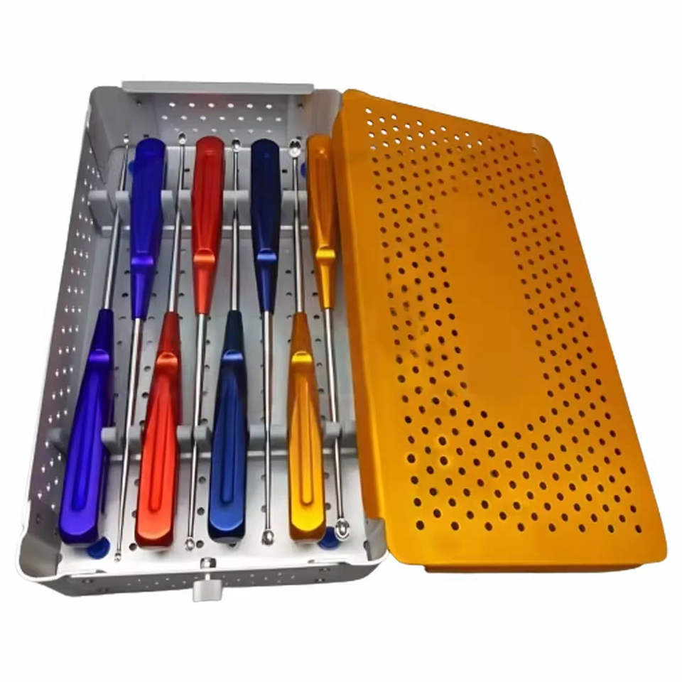 Ensemble d'instruments orthopédiques pour la colonne vertébrale Dom Med Dynamics Premium American Rainbow | Cervical en acier inoxydable manuel de haute qualité