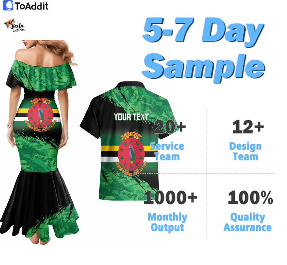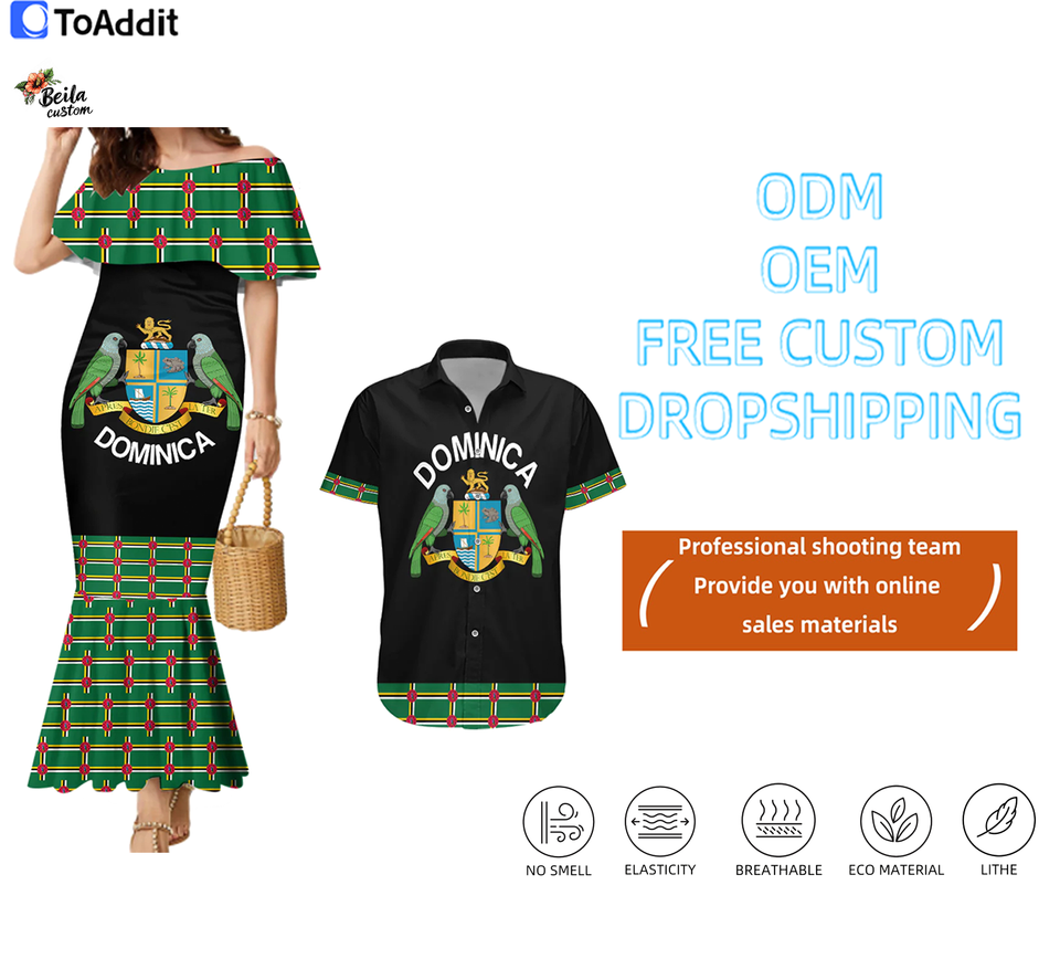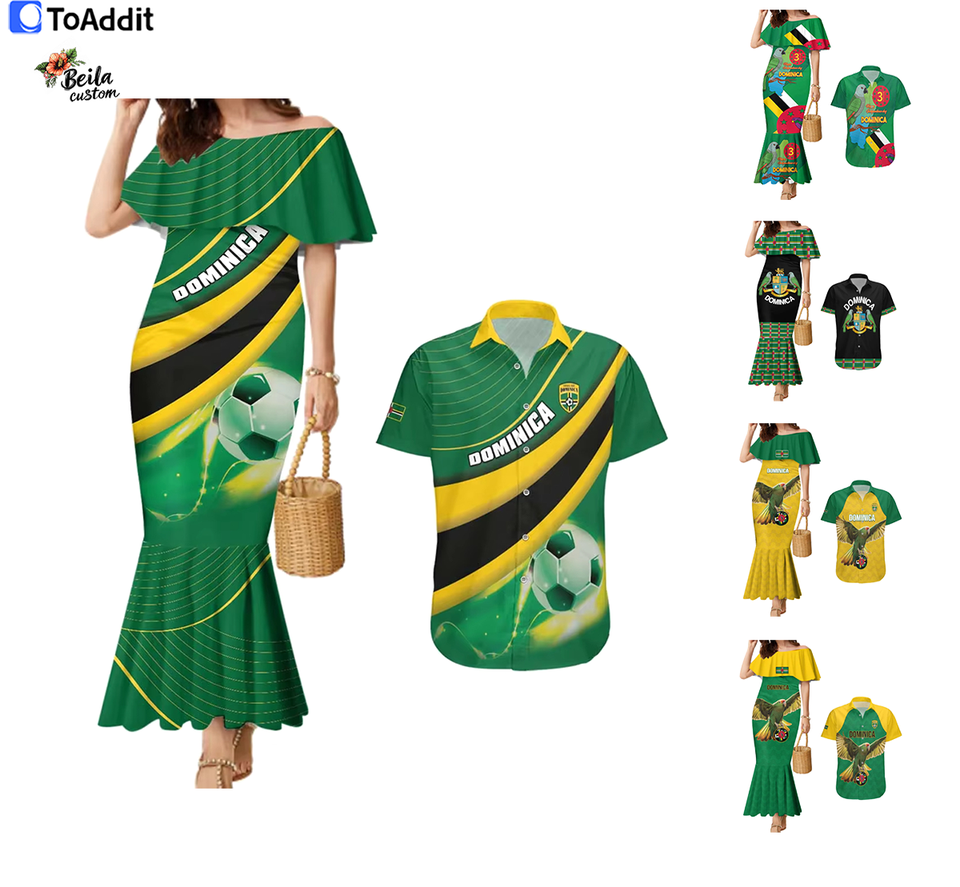 Dominica Football Couples Set Robe Sirène et Chemise Boutonnée à Manches Courtes Style Sportif