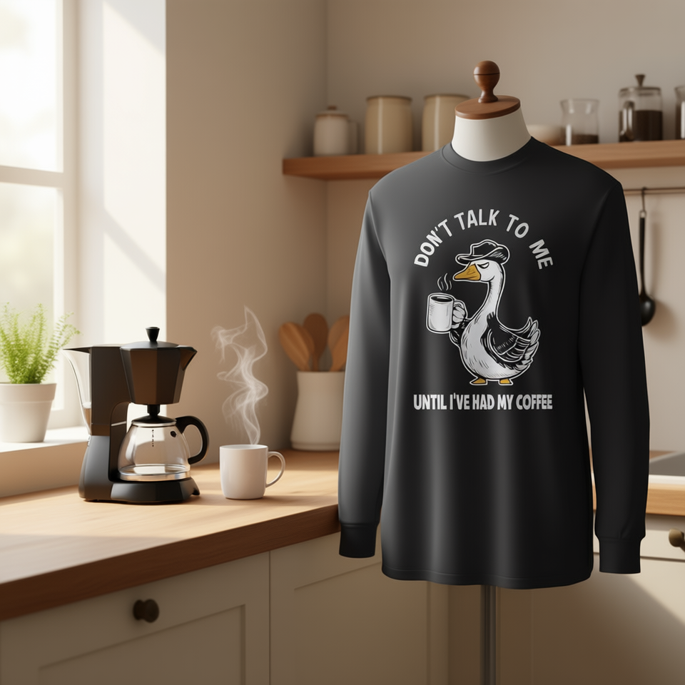 Ne me parlez pas avant que j'ai bu mon café, T-shirt à manches longues Goose