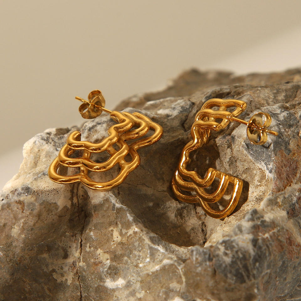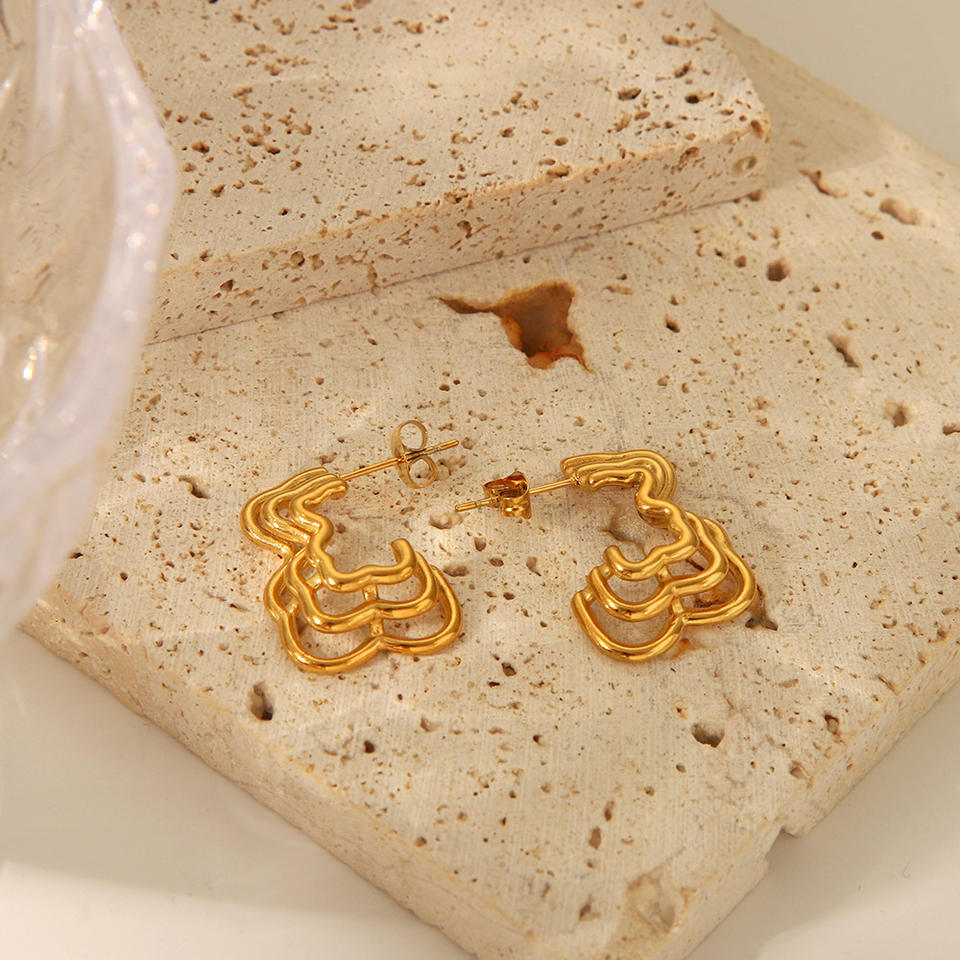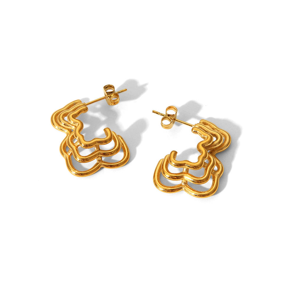 Boucles d'oreilles en acier inoxydable doré, design rétro creux en forme d'oreille d'ours, marque Dongguan Inspire Jewelry, vente en gros