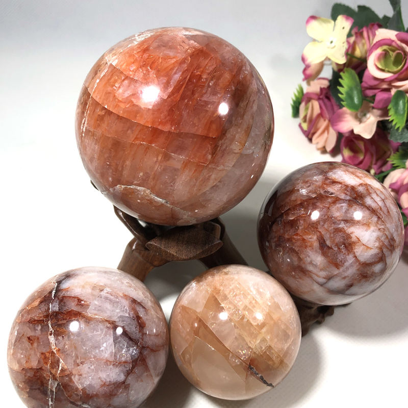 Donghai Quartz de sapin poli de haute qualité Pierre de cristal naturel Sphère de guérison Quartz hématoïde Boule de cristal Thème de l'amour Noël