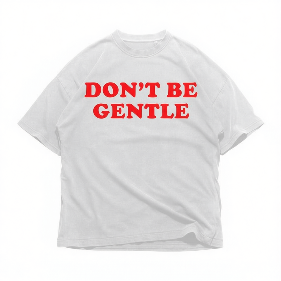 T-shirt graphique surdimensionné « Dont Be Gentle » avec texte rouge, style streetwear audacieux, pour femmes et hommes, rétro