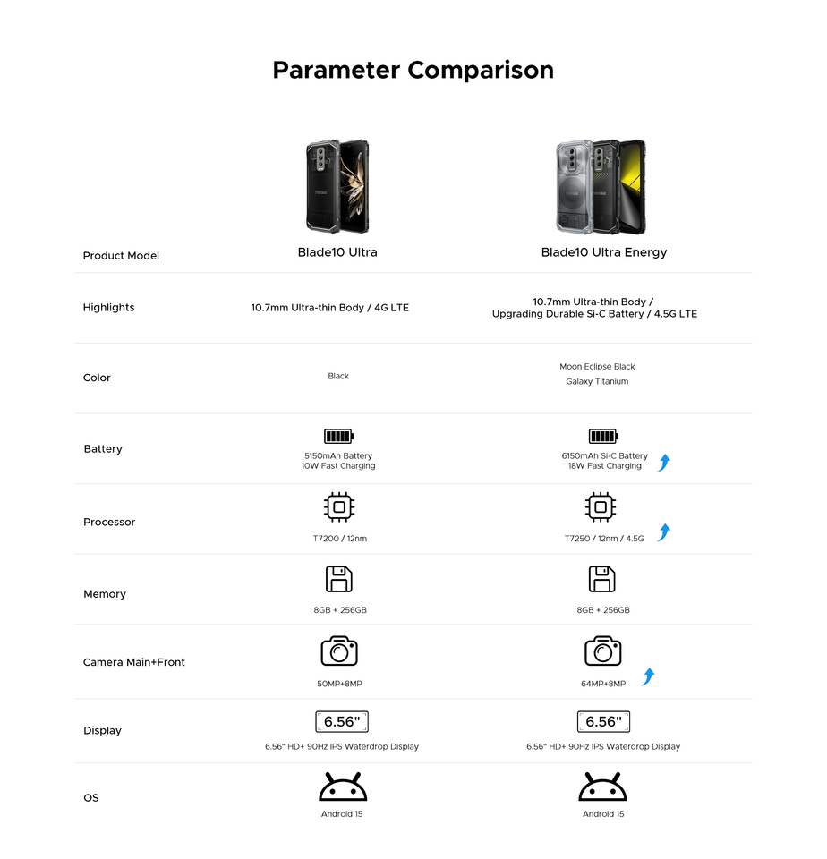 Smartphone robuste Doogee Blade 10 Ultra Energy 8+256 Go 6150 mAh principal 64 MP Android 15 NFC débloqué mondial