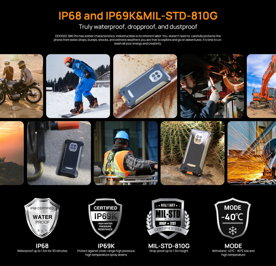 Smartphone robuste Doogee S86 Pro IP68, 8500 mAh, 6,1 pouces, 8 Go + 128 Go, Helio P60, bandes mondiales, triple caméra, thermomètre, téléphone portable