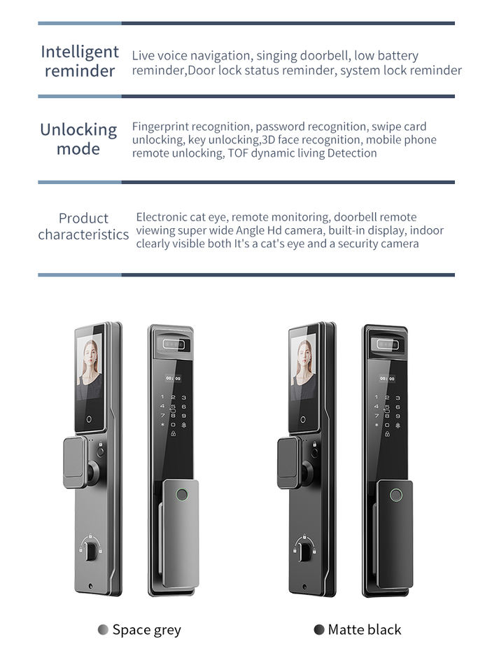 Serrure de porte à verrouillage automatique, caméra, serrure à empreintes digitales, clavier, serrure intelligente Tuya Wifi, reconnaissance faciale 3D, sonnette de porte