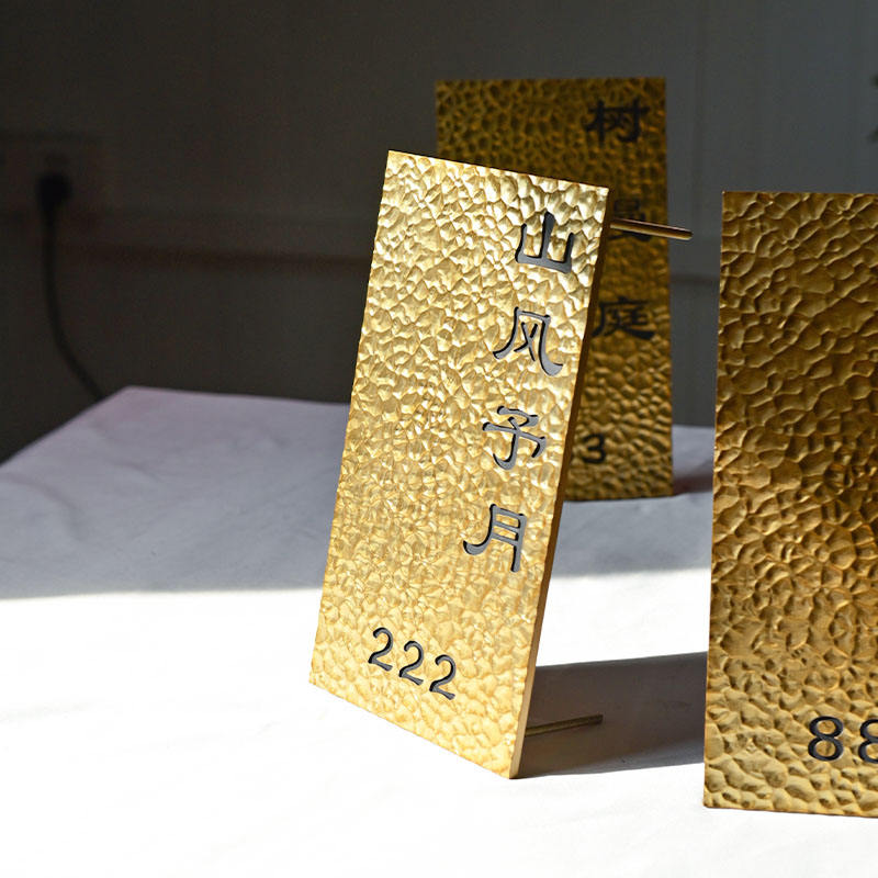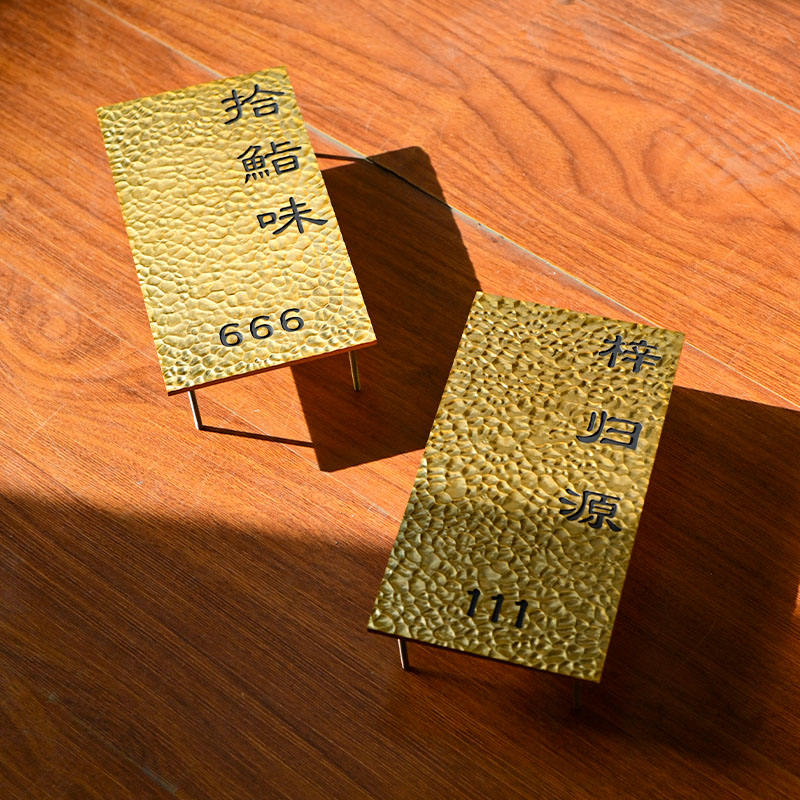 Enseigne de porte, design de texture encastrée, enseigne publicitaire en métal doré, personnalisation de l'enseigne d'entreprise