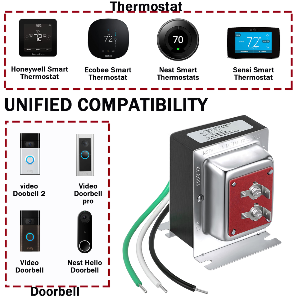 Transformateur de sonnette 24V 40VA Compatible avec Video Doorbell Ring Pro Nest Hello