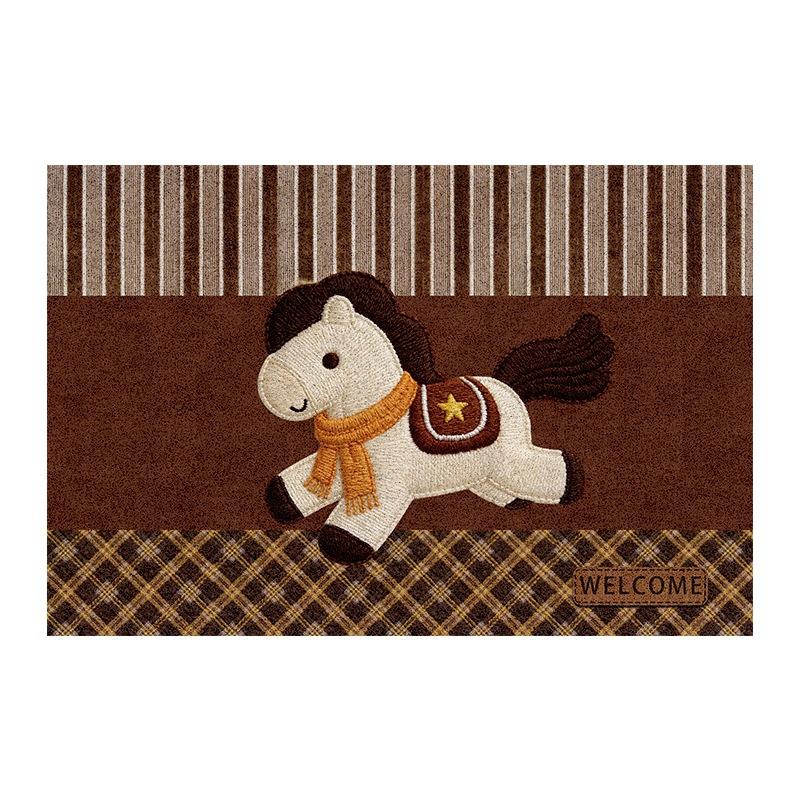 Paillasson rectangulaire antidérapant en boucle de soie, motif cheval du Nouvel An chinois, pour intérieur